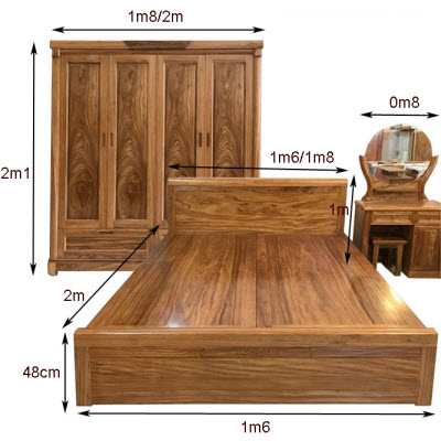 Combo phòng ngủ gỗ Hương Xám đẹp